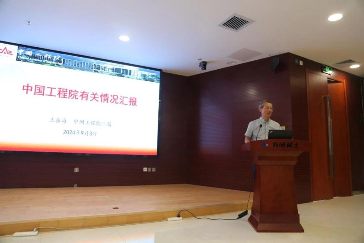 在座谈交流会上,黄小卫院士介绍了稀土行业发展现状、中国有研稀土领域科技创新进展,以及有研稀土党建工作情况;王振海局长介绍了中国工程院及二局重点工作和历史贡献。双方围绕“加快实现稀土科技自立自强”开展座谈交流。