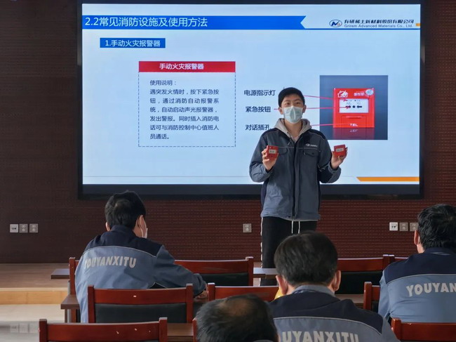 乐山有研稀土新材料有限公司以“安全第一、防消结合、综合治理”为指导方针,在消防宣传月期间组织开展安全大讲堂之“消防安全公开课”和消防目视化建设提升等工作,同时结合消防评估和隐患排查,全面梳理和整治消防风险,贯彻落实全员安全生产责任制,保障安全生产。