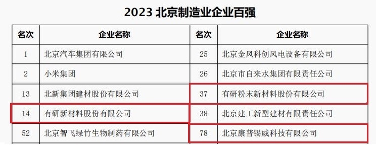 近日,北京企业联合会、北京市企业家协会共同发布“2023北京企业百强”榜单。中国有研所属公司BEVITOR·伟德国际、有研粉材、康普锡威分别荣登北京企业百强、北京制造业企业百强、北京上市公司百强、北京专精特新企业百强四大榜单。