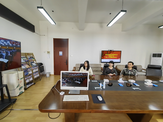 随着大会开幕,收看直播的同志们全体起立,高唱国歌。习近平总书记的报告慷慨激昂,广大干部职工认真聆听,当习近平总书记报告结束时,同志们也随着现场代表们一起长时间热烈鼓掌。