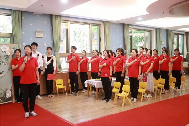 王臣一行为2021-2022年度“有爱有家”先进班组、“四有”教师、先进个人、教师新秀及“风雨同舟”的获奖教职工颁奖。当天,幼儿园还组织开展了师德宣誓、师徒结对等活动,系列活动的开展,充分展示了有研幼儿园教职员工的风采,凝心聚力,进一步坚定了幼儿教育的初心。