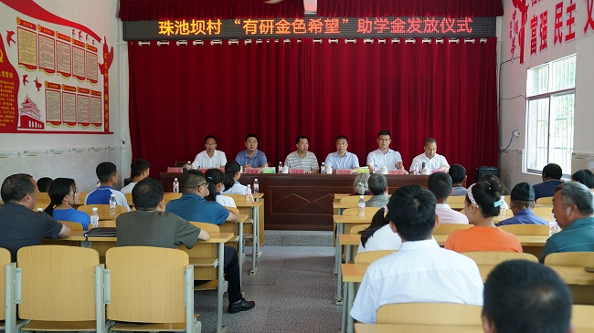 调研期间,赵晓晨一行还实地调研考察了香坝镇南山小学有研金色希望童园、邵家桥镇珠池坝村特色田园乡村建设示范点、县特殊教育学校有研金色希望康复训练中心、易地扶贫搬迁安置点丽景社区等地,并在邵家桥镇珠池坝村举行了有研金色希望奖学金发放仪式。