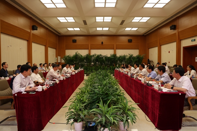 8月31日,有研集团党委书记、董事长赵晓晨,党委副书记、总经理熊柏青带领领导班子走访中国钢研科技集团有限公司,中国钢研党委书记、董事长张少明,党委副书记、总经理李波等集团领导班子成员陪同参观并座谈交流。