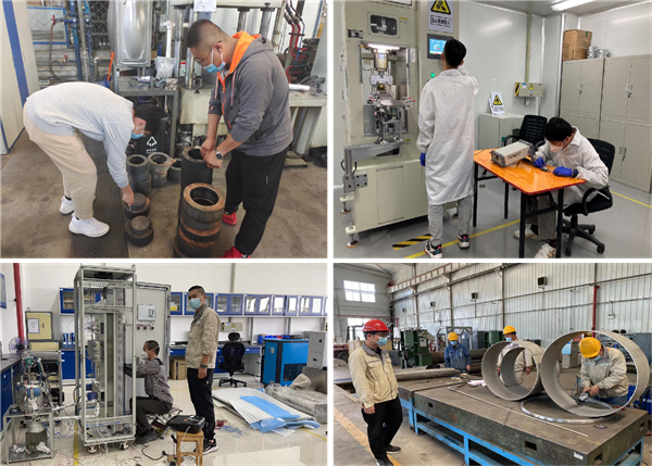 有研工研院各事业部结合科研生产实际,细化部门疫情防控工作,领导班子和相关负责人主动请缨,带头坚守一线。结构事业部各研究所安排员工驻守怀柔基地,摸排供应链断链断供情况,针对每一个订货产品,仔细核实每一道生产工序,按照时间节点倒推,确保产品依约交付。电子事业部组织家住怀柔的职工召开紧急会议,统筹安排研究生住宿,各“突击队”成员坚守科研生产一线,保障疫情期间国家关键项目攻关及产品按时保供。新能源事业部向居家隔离人员派送生活必需品,稳定员工情绪,利用线上会议等与各合作方加强联系,积极进行纵向课题与横向合同的争项。特种事业部青年员工长期驻扎外地安装现场,在设备紧缺的情况下确保项目图纸按时交付;加工中心员工克服人员少、快递流通困难、生产物资短缺等困难,加班加点确保重点生产项目保质保量按时发货。