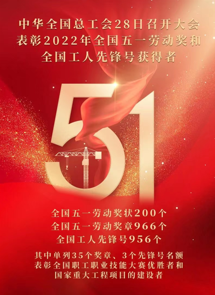 4月28日,中华全国总工会表彰了2022年全国五一劳动奖和全国工人先锋号获得者,全国五一劳动奖状200个,全国五一劳动奖章966个,全国工人先锋号956个。有研集团荣获全国五一劳动奖状。