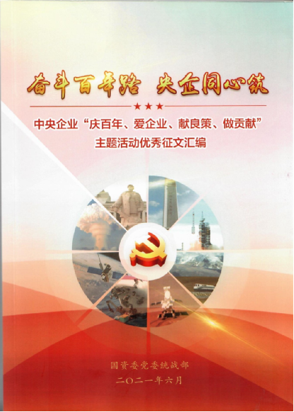 结合国资委党委统战部“奋斗百年路 央企同心筑”主题征文活动,在全集团统战对象中广泛动员,组织广大统战对象结合自身经历,讲述在党的领导下奋斗爱国、科研强企,推动集团创新驱动高质量发展的故事,集中展现集团广大统战对象携手同心、共创伟业的良好精神风貌。向国资委党委统战部推荐的《从党史中汲取奋进力量 用心走好三步路》入选《奋斗百年路 央企同心筑——中央企业“庆百年、爱企业、献良策、做贡献”主题活动优秀征文汇编》。