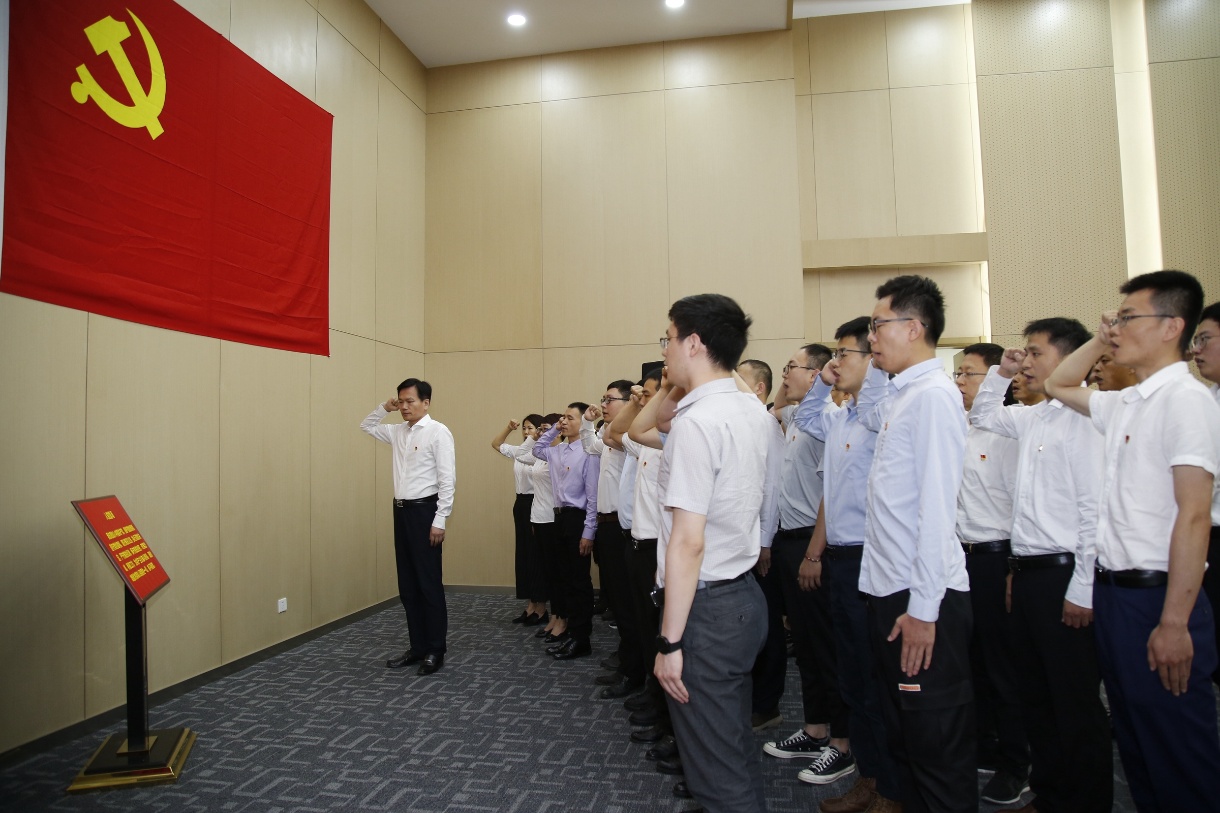 大会在庄严的国歌声中拉开序幕,38名新发展党员面向党旗郑重宣誓,许下为共产主义事业奋斗终身的坚定承诺。