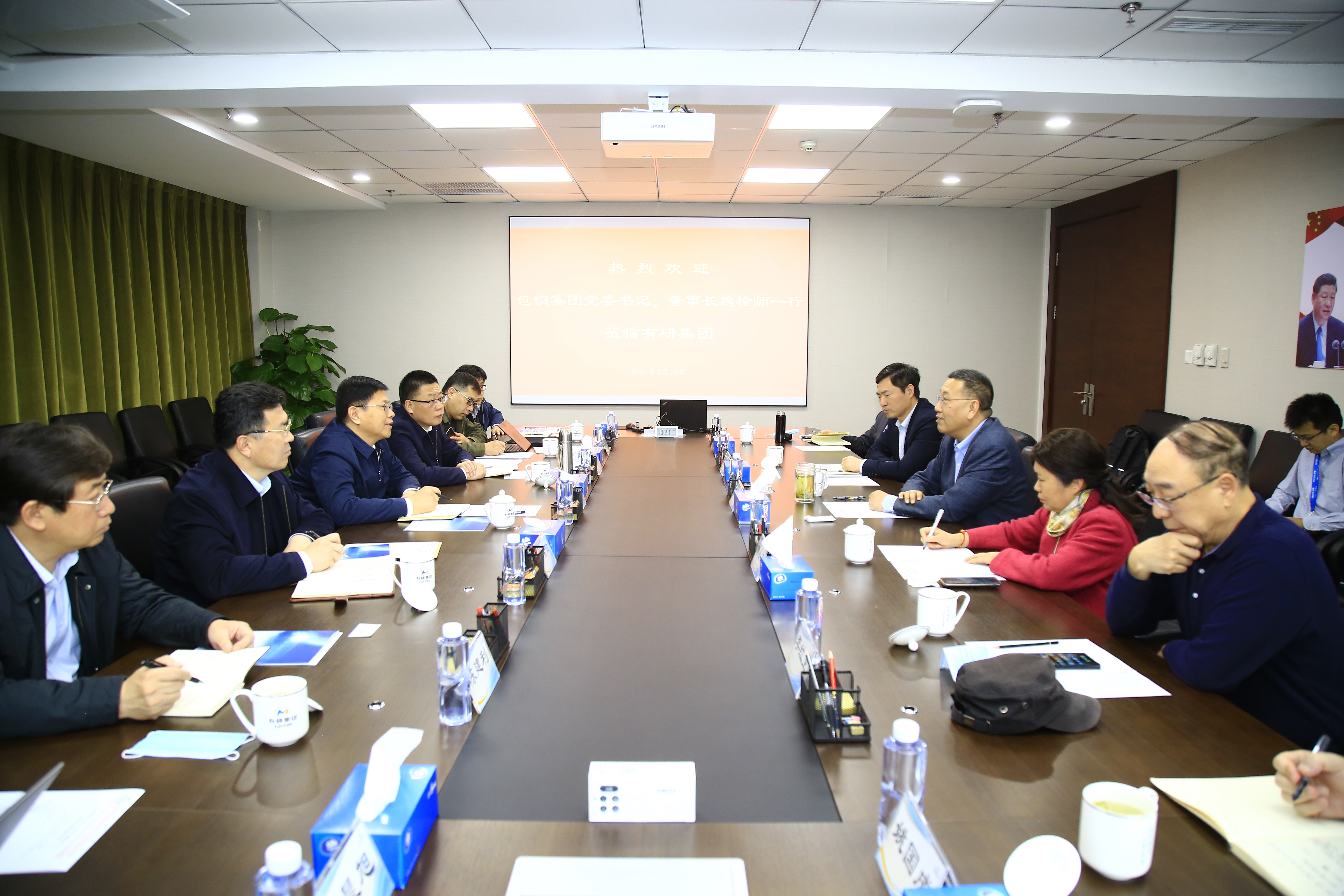 3月26日,包钢集团党委书记、董事长魏栓师一行到访有研集团,有研集团总经理熊柏青、首席科学家黄小卫院士、副总经理王兴权等陪同座谈交流。