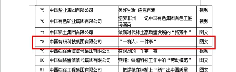 今年4月,为深入贯彻落实党的二十大精神和学习贯彻习近平新时代中国特色社会主义思想主题教育的目标要求,中国有研开展了“学思想、强党性、重实践、建新功”优秀故事征集活动。活动开展以来,共收到各单位报送的57篇参赛作品,生动讲述了有研人在强化科技创新、服务国家重大工程、推动经济社会发展等方面作出的新贡献和取得的新成就。经评委组评选,集团共推荐13篇优秀作品参赛,10篇优秀故事入围参加了第六届中央企业优秀故事创作展示活动。
